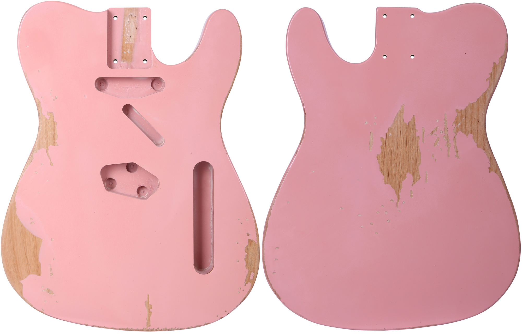 Specifications: TL Style guitar body Wood: Alder Finish: Relic Pink Pickup Route: Traditional Telecaster No pickguard mounting holes Diameter of the Hole for Neck Joint Screw : 4.5mm Neck Pocket Width: 56mm Neck Pocket Depth: 18mm