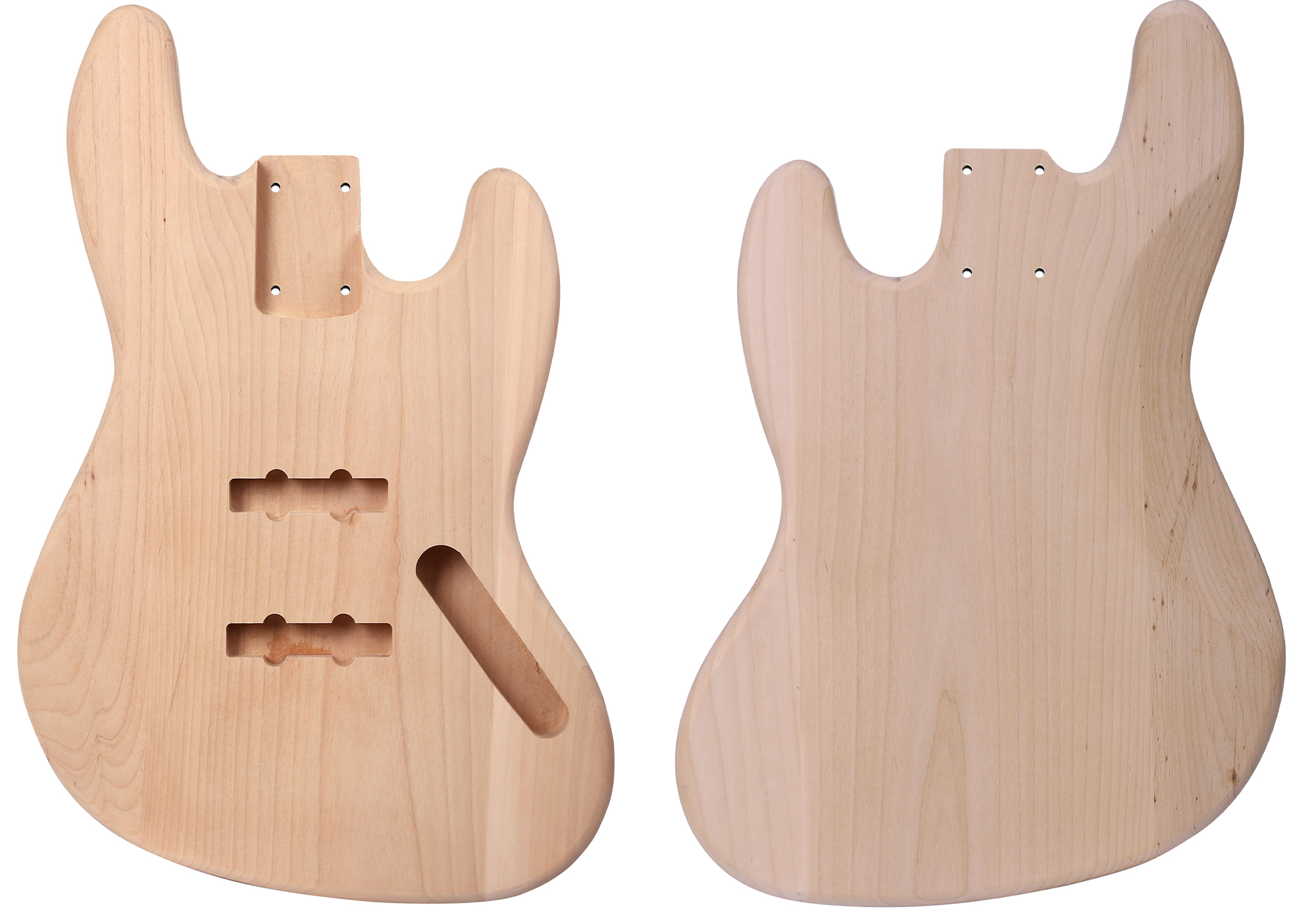 Specifications: Body Shape: Jazz Bass Wood: Alder Finish: Unpainted Pickup Route: Traditional 4-string Jazz Bass No pickguard mounting holes Diameter of the Hole for Neck Joint Screw : 4.5mm Built for 864mm/34" scale length necks